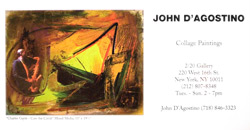 John E. D’Agostino lives in Queens, NY and has been exhibiting work since 1978.